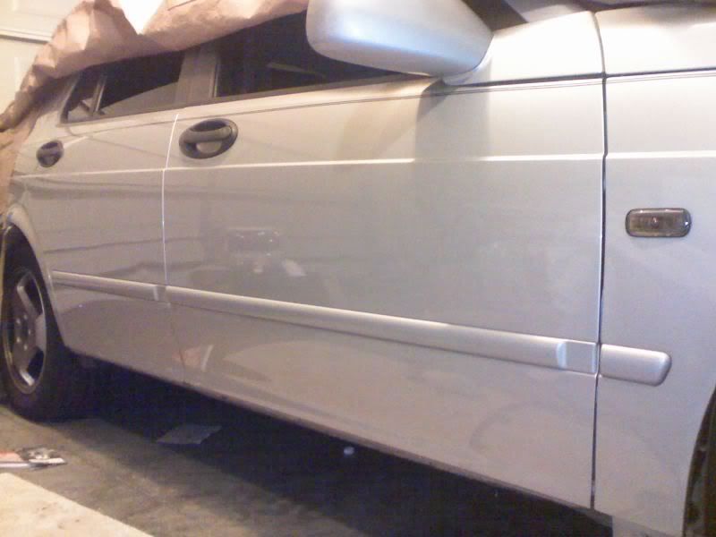 You can buy the side mouldings painted for 06+ models from places such as thesaabsite. Unfortunately the newer models do not have front or rear bumper mouldings, so you have to do that yourself. You can also buy the painted door handles for 06+ models and swap them, at least according to the parts guy at my local dealer. I have only been able to find one part number that correlates between both sets of model years, so I'm not 100% on whether it is possible or not as there are 3 different part numbers for door handles.